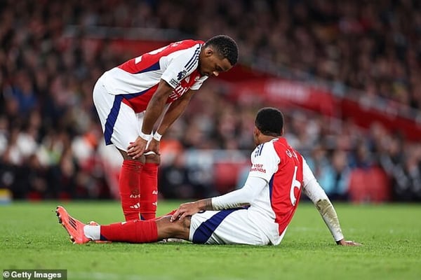 The knock appeared to come after a collision with Darwin Nunez seemed to jar Gabriel's left knee and the Brazilian was later spotted by the TV cameras on the substitutes bench with his knee heavily iced up.